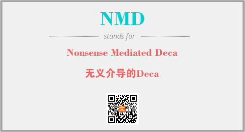 英文缩略词“NMD”经常作为“Nonsense Mediated Deca”的英文缩写来使用,中文表示:“无义介导的Deca”。本文将详细介绍英文缩写词NMD所代表英文单词,其对应的中文拼音、详细解释以及在英语中的流行度。此外,还有关于缩略词NMD的分类、应用领域及相关应用示例等。