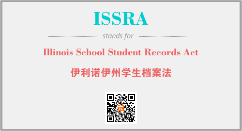 英文缩略词“ISSRA”经常作为“Illinois School Student Records Act”的英文缩写来使用,中文表示:“伊利诺伊州学生档案法”。本文将详细介绍英文缩写词ISSRA所代表英文单词,其对应的中文拼音、详细解释以及在英语中的流行度。此外,还有关于缩略词ISSRA的分类、应用领域及相关应用示例等。