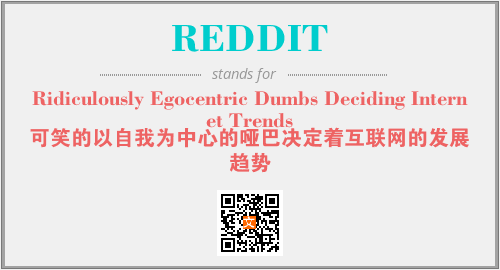 上述内容是“Ridiculously Egocentric Dumbs Deciding Internet Trends”作为“REDDIT”的缩写,解释为“可笑的以自我为中心的哑巴决定着互联网的发展趋势”时的信息,以及英文缩略词REDDIT所代表的英文单词,其对应的中文拼音、详细解释以及在英文中的流行度和相关分类、应用领域及应用示例等。