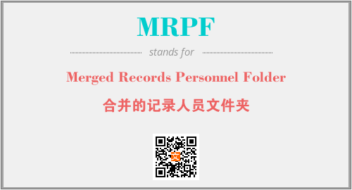 上述内容是“Merged Records Personnel Folder”作为“MRPF”的缩写,解释为“合并的记录人员文件夹”时的信息,以及英文缩略词MRPF所代表的英文单词,其对应的中文拼音、详细解释以及在英文中的流行度和相关分类、应用领域及应用示例等。