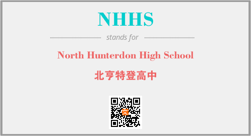 英文缩略词“NHHS”经常作为“North Hunterdon High School”的英文缩写来使用,中文表示:“北亨特登高中”。本文将详细介绍英文缩写词NHHS所代表英文单词,其对应的中文拼音、详细解释以及在英语中的流行度。此外,还有关于缩略词NHHS的分类、应用领域及相关应用示例等。