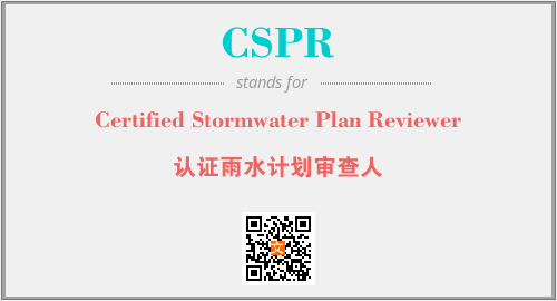 上述内容是“Certified Stormwater Plan Reviewer”作为“CSPR”的缩写,解释为“认证雨水计划审查人”时的信息,以及英文缩略词CSPR所代表的英文单词,其对应的中文拼音、详细解释以及在英文中的流行度和相关分类、应用领域及应用示例等。