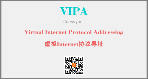 上述内容是“Virtual Internet Protocol Addressing”作为“VIPA”的缩写,解释为“虚拟Internet协议寻址”时的信息,以及英文缩略词VIPA所代表的英文单词,其对应的中文拼音、详细解释以及在英文中的流行度和相关分类、应用领域及应用示例等。