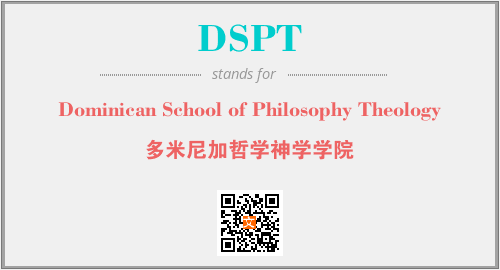 上述内容是“Dominican School of Philosophy Theology”作为“DSPT”的缩写,解释为“多米尼加哲学神学学院”时的信息,以及英文缩略词DSPT所代表的英文单词,其对应的中文拼音、详细解释以及在英文中的流行度和相关分类、应用领域及应用示例等。