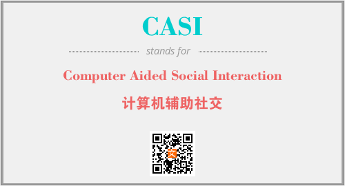 英文缩略词“CASI”经常作为“Computer Aided Social Interaction”的英文缩写来使用,中文表示:“计算机辅助社交”。本文将详细介绍英文缩写词CASI所代表英文单词,其对应的中文拼音、详细解释以及在英语中的流行度。此外,还有关于缩略词CASI的分类、应用领域及相关应用示例等。