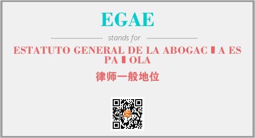 上述内容是“ESTATUTO GENERAL DE LA ABOGACÍA ESPAÑOLA”作为“EGAE”的缩写,解释为“律师一般地位”时的信息,以及英文缩略词EGAE所代表的英文单词,其对应的中文拼音、详细解释以及在英文中的流行度和相关分类、应用领域及应用示例等。