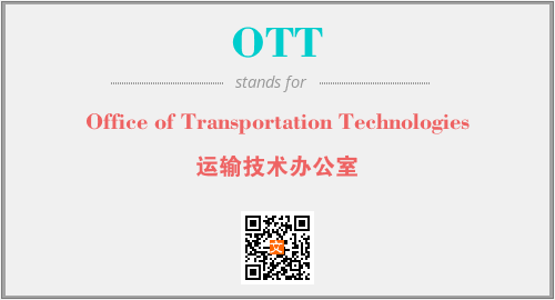 上述内容是“Office of Transportation Technologies”作为“OTT”的缩写,解释为“运输技术办公室”时的信息,以及英文缩略词OTT所代表的英文单词,其对应的中文拼音、详细解释以及在英文中的流行度和相关分类、应用领域及应用示例等。