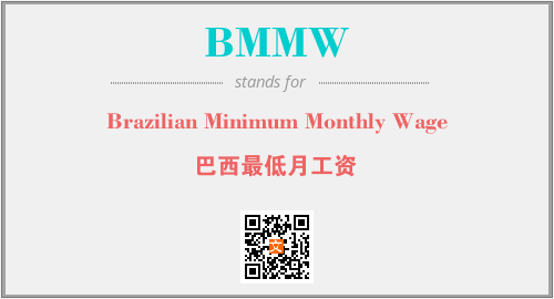 英文缩略词“BMMW”经常作为“Brazilian Minimum Monthly Wage”的英文缩写来使用,中文表示:“巴西最低月工资”。本文将详细介绍英文缩写词BMMW所代表英文单词,其对应的中文拼音、详细解释以及在英语中的流行度。此外,还有关于缩略词BMMW的分类、应用领域及相关应用示例等。