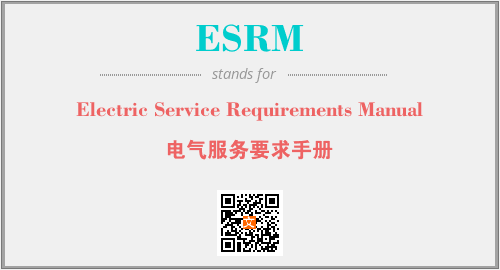 英文缩略词“ESRM”经常作为“Electric Service Requirements Manual”的英文缩写来使用,中文表示:“电气服务要求手册”。本文将详细介绍英文缩写词ESRM所代表英文单词,其对应的中文拼音、详细解释以及在英语中的流行度。此外,还有关于缩略词ESRM的分类、应用领域及相关应用示例等。
