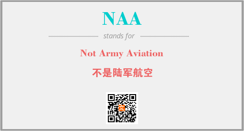 以上为Not Army Aviation英文缩略词NAA的中文解释,以及该英文缩写在英语的流行度、分类和应用领域方面的信息。