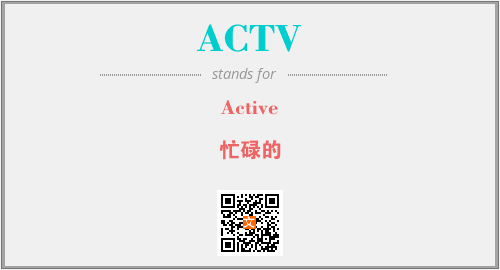 上述内容是“Active”作为“ACTV”的缩写,解释为“忙碌的”时的信息,以及英文缩略词ACTV所代表的英文单词,其对应的中文拼音、详细解释以及在英文中的流行度和相关分类、应用领域及应用示例等。