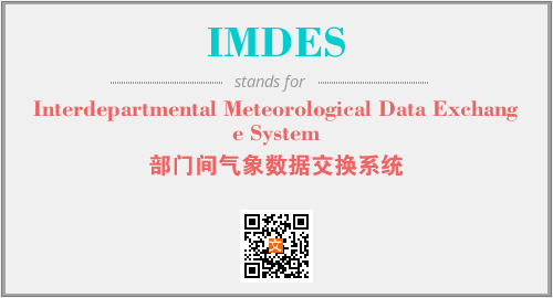 上述内容是“Interdepartmental Meteorological Data Exchange System”作为“IMDES”的缩写,解释为“部门间气象数据交换系统”时的信息,以及英文缩略词IMDES所代表的英文单词,其对应的中文拼音、详细解释以及在英文中的流行度和相关分类、应用领域及应用示例等。