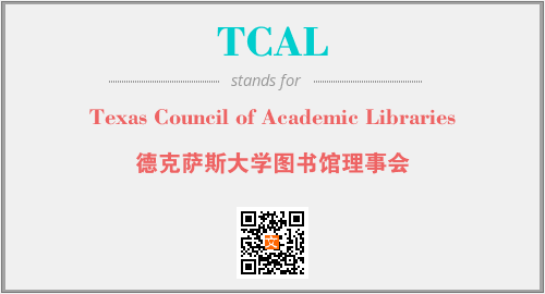 英文缩略词“TCAL”经常作为“Texas Council of Academic Libraries”的英文缩写来使用,中文表示:“德克萨斯大学图书馆理事会”。本文将详细介绍英文缩写词TCAL所代表英文单词,其对应的中文拼音、详细解释以及在英语中的流行度。此外,还有关于缩略词TCAL的分类、应用领域及相关应用示例等。