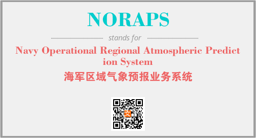 英文缩略词“NORAPS”经常作为“Navy Operational Regional Atmospheric Prediction System”的英文缩写来使用,中文表示:“海军区域气象预报业务系统”。本文将详细介绍英文缩写词NORAPS所代表英文单词,其对应的中文拼音、详细解释以及在英语中的流行度。此外,还有关于缩略词NORAPS的分类、应用领域及相关应用示例等。