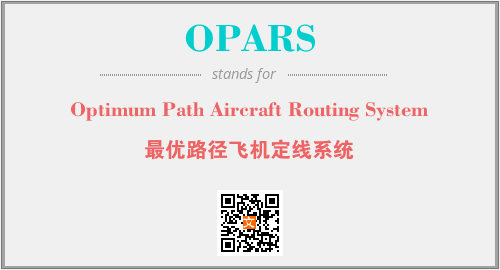 上述内容是“Optimum Path Aircraft Routing System”作为“OPARS”的缩写,解释为“最优路径飞机定线系统”时的信息,以及英文缩略词OPARS所代表的英文单词,其对应的中文拼音、详细解释以及在英文中的流行度和相关分类、应用领域及应用示例等。