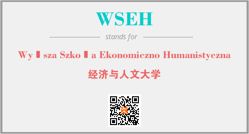 上述内容是“Wyższa Szkoła Ekonomiczno Humanistyczna”作为“WSEH”的缩写,解释为“经济与人文大学”时的信息,以及英文缩略词WSEH所代表的英文单词,其对应的中文拼音、详细解释以及在英文中的流行度和相关分类、应用领域及应用示例等。