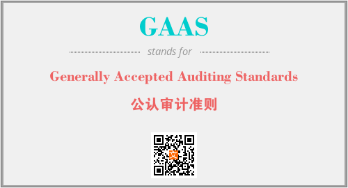 上述内容是“Generally Accepted Auditing Standards”作为“GAAS”的缩写,解释为“公认审计准则”时的信息,以及英文缩略词GAAS所代表的英文单词,其对应的中文拼音、详细解释以及在英文中的流行度和相关分类、应用领域及应用示例等。