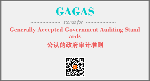 上述内容是“Generally Accepted Government Auditing Standards”作为“GAGAS”的缩写,解释为“公认的政府审计准则”时的信息,以及英文缩略词GAGAS所代表的英文单词,其对应的中文拼音、详细解释以及在英文中的流行度和相关分类、应用领域及应用示例等。