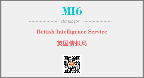 上述内容是“British Intelligence Service”作为“MI6”的缩写,解释为“英国情报局”时的信息,以及英文缩略词MI6所代表的英文单词,其对应的中文拼音、详细解释以及在英文中的流行度和相关分类、应用领域及应用示例等。