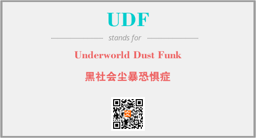 上述内容是“Underworld Dust Funk”作为“UDF”的缩写,解释为“黑社会尘暴恐惧症”时的信息,以及英文缩略词UDF所代表的英文单词,其对应的中文拼音、详细解释以及在英文中的流行度和相关分类、应用领域及应用示例等。