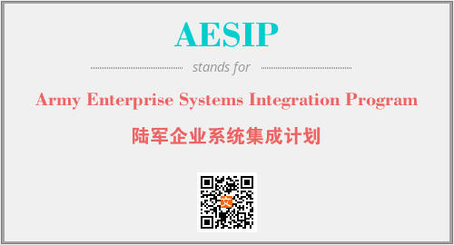 英文缩略词“AESIP”经常作为“Army Enterprise Systems Integration Program”的英文缩写来使用,中文表示:“陆军企业系统集成计划”。本文将详细介绍英文缩写词AESIP所代表英文单词,其对应的中文拼音、详细解释以及在英语中的流行度。此外,还有关于缩略词AESIP的分类、应用领域及相关应用示例等。