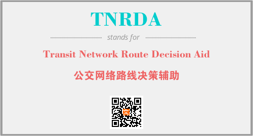 上述内容是“Transit Network Route Decision Aid”作为“TNRDA”的缩写,解释为“公交网络路线决策辅助”时的信息,以及英文缩略词TNRDA所代表的英文单词,其对应的中文拼音、详细解释以及在英文中的流行度和相关分类、应用领域及应用示例等。