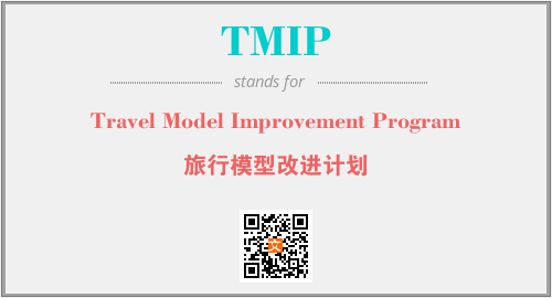 上述内容是“Travel Model Improvement Program”作为“TMIP”的缩写,解释为“旅行模型改进计划”时的信息,以及英文缩略词TMIP所代表的英文单词,其对应的中文拼音、详细解释以及在英文中的流行度和相关分类、应用领域及应用示例等。