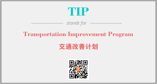 上述内容是“Transportation Improvement Program”作为“TIP”的缩写,解释为“交通改善计划”时的信息,以及英文缩略词TIP所代表的英文单词,其对应的中文拼音、详细解释以及在英文中的流行度和相关分类、应用领域及应用示例等。