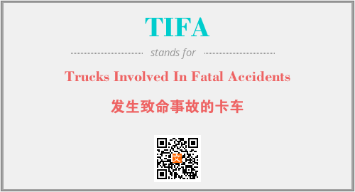 上述内容是“Trucks Involved In Fatal Accidents”作为“TIFA”的缩写,解释为“发生致命事故的卡车”时的信息,以及英文缩略词TIFA所代表的英文单词,其对应的中文拼音、详细解释以及在英文中的流行度和相关分类、应用领域及应用示例等。