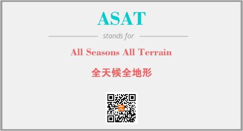 英文缩略词“ASAT”经常作为“All Seasons All Terrain”的英文缩写来使用,中文表示:“全天候全地形”。本文将详细介绍英文缩写词ASAT所代表英文单词,其对应的中文拼音、详细解释以及在英语中的流行度。此外,还有关于缩略词ASAT的分类、应用领域及相关应用示例等。
