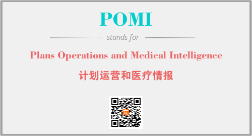 上述内容是“Plans Operations and Medical Intelligence”作为“POMI”的缩写,解释为“计划运营和医疗情报”时的信息,以及英文缩略词POMI所代表的英文单词,其对应的中文拼音、详细解释以及在英文中的流行度和相关分类、应用领域及应用示例等。