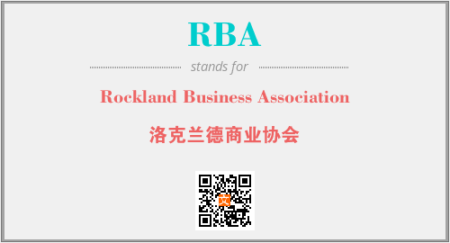 上述内容是“Rockland Business Association”作为“RBA”的缩写,解释为“洛克兰德商业协会”时的信息,以及英文缩略词RBA所代表的英文单词,其对应的中文拼音、详细解释以及在英文中的流行度和相关分类、应用领域及应用示例等。
