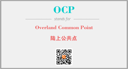 英文缩略词“OCP”经常作为“Overland Common Point”的英文缩写来使用,中文表示:“陆上公共点”。本文将详细介绍英文缩写词OCP所代表英文单词,其对应的中文拼音、详细解释以及在英语中的流行度。此外,还有关于缩略词OCP的分类、应用领域及相关应用示例等。