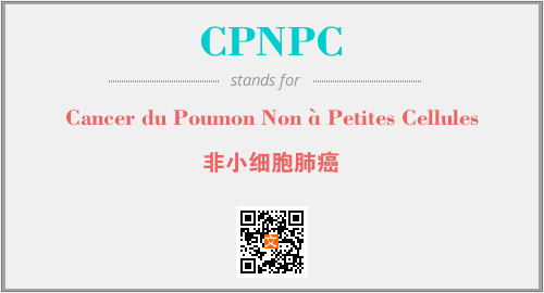 英文缩略词“CPNPC”经常作为“Cancer du Poumon Non à Petites Cellules”的英文缩写来使用,中文表示:“非小细胞肺癌”。本文将详细介绍英文缩写词CPNPC所代表英文单词,其对应的中文拼音、详细解释以及在英语中的流行度。此外,还有关于缩略词CPNPC的分类、应用领域及相关应用示例等。