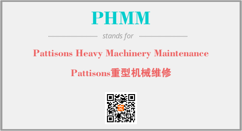 上述内容是“Pattisons Heavy Machinery Maintenance”作为“PHMM”的缩写,解释为“Pattisons重型机械维修”时的信息,以及英文缩略词PHMM所代表的英文单词,其对应的中文拼音、详细解释以及在英文中的流行度和相关分类、应用领域及应用示例等。
