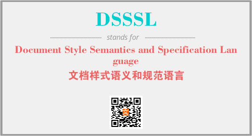 英文缩略词“DSSSL”经常作为“Document Style Semantics and Specification Language”的英文缩写来使用,中文表示:“文档样式语义和规范语言”。本文将详细介绍英文缩写词DSSSL所代表英文单词,其对应的中文拼音、详细解释以及在英语中的流行度。此外,还有关于缩略词DSSSL的分类、应用领域及相关应用示例等。