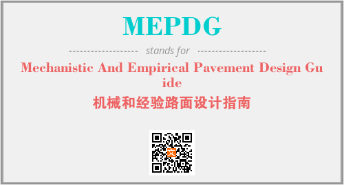 英文缩略词“MEPDG”经常作为“Mechanistic And Empirical Pavement Design Guide”的英文缩写来使用,中文表示:“机械和经验路面设计指南”。本文将详细介绍英文缩写词MEPDG所代表英文单词,其对应的中文拼音、详细解释以及在英语中的流行度。此外,还有关于缩略词MEPDG的分类、应用领域及相关应用示例等。