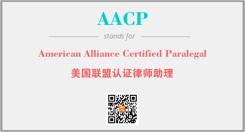 以上为American Alliance Certified Paralegal英文缩略词AACP的中文解释,以及该英文缩写在英语的流行度、分类和应用领域方面的信息。