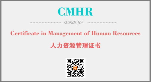上述内容是“Certificate in Management of Human Resources”作为“CMHR”的缩写,解释为“人力资源管理证书”时的信息,以及英文缩略词CMHR所代表的英文单词,其对应的中文拼音、详细解释以及在英文中的流行度和相关分类、应用领域及应用示例等。