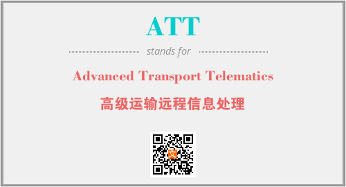 英文缩略词“ATT”经常作为“Advanced Transport Telematics”的英文缩写来使用,中文表示:“高级运输远程信息处理”。本文将详细介绍英文缩写词ATT所代表英文单词,其对应的中文拼音、详细解释以及在英语中的流行度。此外,还有关于缩略词ATT的分类、应用领域及相关应用示例等。