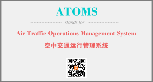 上述内容是“Air Traffic Operations Management System”作为“ATOMS”的缩写,解释为“空中交通运行管理系统”时的信息,以及英文缩略词ATOMS所代表的英文单词,其对应的中文拼音、详细解释以及在英文中的流行度和相关分类、应用领域及应用示例等。