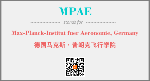 上述内容是“Max-Planck-Institut fuer Aeronomie, Germany”作为“MPAE”的缩写,解释为“德国马克斯·普朗克飞行学院”时的信息,以及英文缩略词MPAE所代表的英文单词,其对应的中文拼音、详细解释以及在英文中的流行度和相关分类、应用领域及应用示例等。