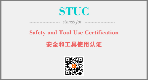 上述内容是“Safety and Tool Use Certification”作为“STUC”的缩写,解释为“安全和工具使用认证”时的信息,以及英文缩略词STUC所代表的英文单词,其对应的中文拼音、详细解释以及在英文中的流行度和相关分类、应用领域及应用示例等。