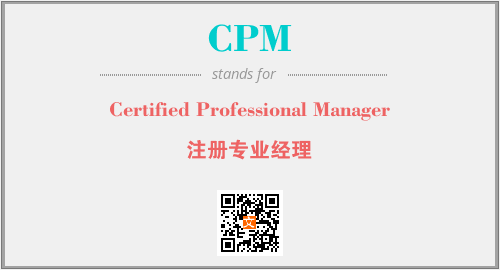 英文缩略词“CPM”经常作为“Certified Professional Manager”的英文缩写来使用,中文表示:“注册专业经理”。本文将详细介绍英文缩写词CPM所代表英文单词,其对应的中文拼音、详细解释以及在英语中的流行度。此外,还有关于缩略词CPM的分类、应用领域及相关应用示例等。