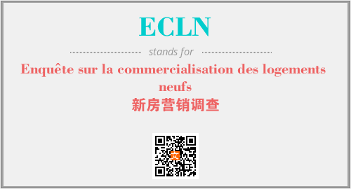 上述内容是“Enquête sur la commercialisation des logements neufs”作为“ECLN”的缩写,解释为“新房营销调查”时的信息,以及英文缩略词ECLN所代表的英文单词,其对应的中文拼音、详细解释以及在英文中的流行度和相关分类、应用领域及应用示例等。