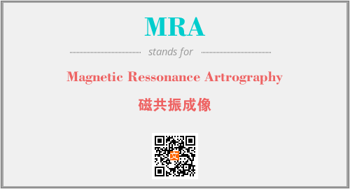 上述内容是“Magnetic Ressonance Artrography”作为“MRA”的缩写,解释为“磁共振成像”时的信息,以及英文缩略词MRA所代表的英文单词,其对应的中文拼音、详细解释以及在英文中的流行度和相关分类、应用领域及应用示例等。