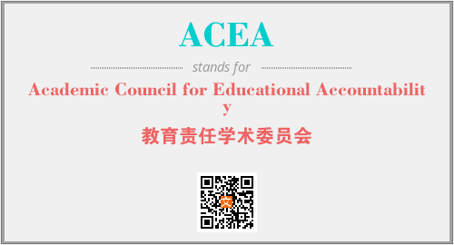 上述内容是“Academic Council for Educational Accountability”作为“ACEA”的缩写,解释为“教育责任学术委员会”时的信息,以及英文缩略词ACEA所代表的英文单词,其对应的中文拼音、详细解释以及在英文中的流行度和相关分类、应用领域及应用示例等。