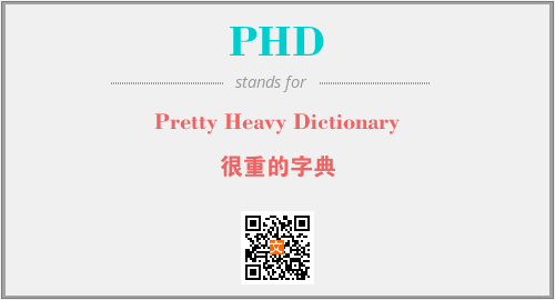 上述内容是“Pretty Heavy Dictionary”作为“PHD”的缩写,解释为“很重的字典”时的信息,以及英文缩略词PHD所代表的英文单词,其对应的中文拼音、详细解释以及在英文中的流行度和相关分类、应用领域及应用示例等。