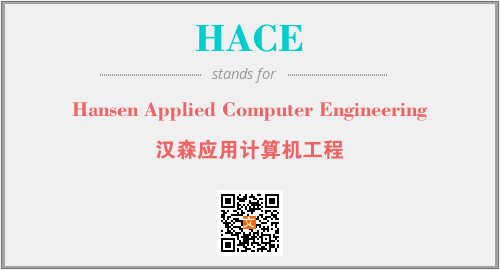 上述内容是“Hansen Applied Computer Engineering”作为“HACE”的缩写,解释为“汉森应用计算机工程”时的信息,以及英文缩略词HACE所代表的英文单词,其对应的中文拼音、详细解释以及在英文中的流行度和相关分类、应用领域及应用示例等。