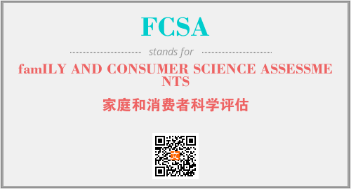 上述内容是“famILY AND CONSUMER SCIENCE ASSESSMENTS”作为“FCSA”的缩写,解释为“家庭和消费者科学评估”时的信息,以及英文缩略词FCSA所代表的英文单词,其对应的中文拼音、详细解释以及在英文中的流行度和相关分类、应用领域及应用示例等。